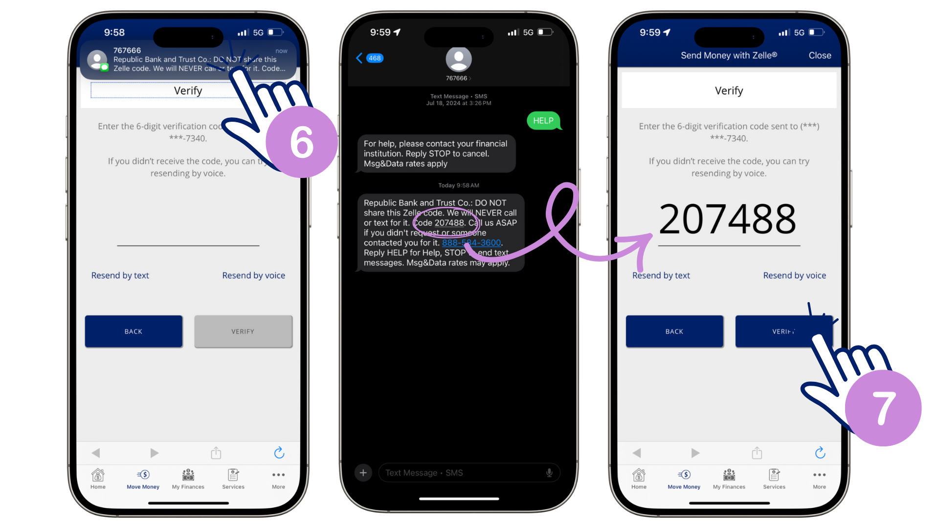 To verify your U.S. mobile phone, we will send a text message from short-code 767666 with your one-time passcode - add the security token to your Zelle® verification screen and select "Verify".