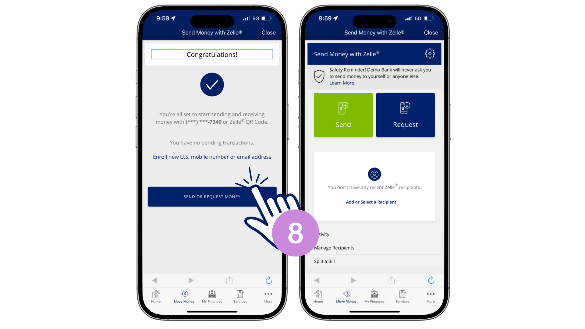 1. Log into your mobile banking* and select Move Money, then select "Send Money with Zelle®" in the menu.